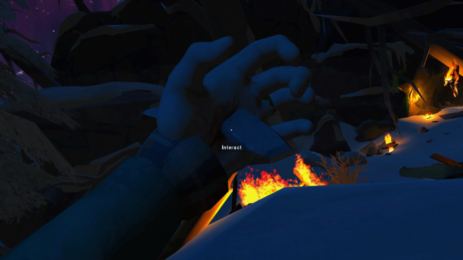 Thankfully, the game sees fit to provide you with a starter torch! Strike a match so you can see the torch (or just fumble about in the dark, Long Dark veterans) and pick it up. Or you might have taken a torch from a previous fire, in which case just pull that out and light it.