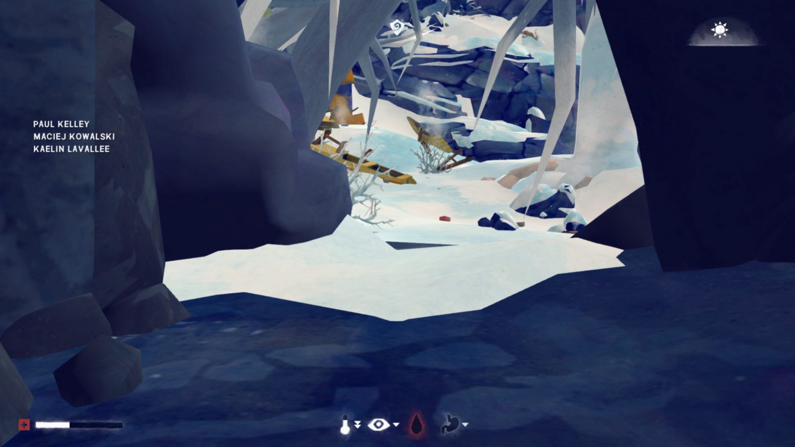Once you’ve stopped the blood loss, you need to find somewhere for Will to rest that is protected from the wind. Caves are great places to take shelter when there are no artificial buildings about, so keep moving forward until you find one. Once you enter the cave, the game walks you through the importance of fire and how to make one. Will then falls asleep.