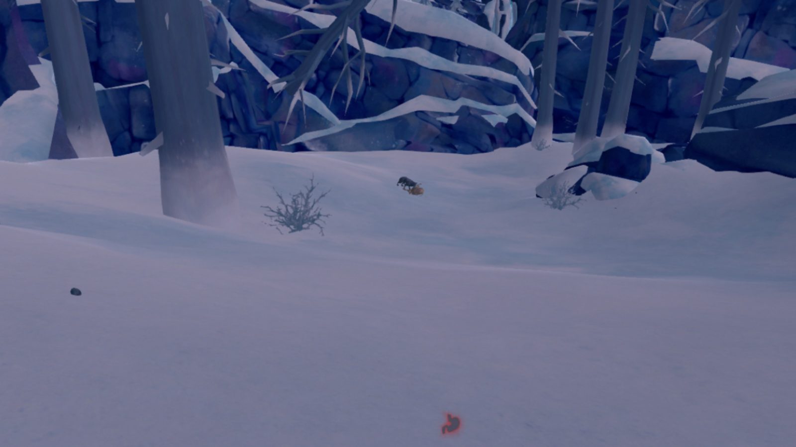 Anyways, keep going until you come to a frozen lake. The game will teach you about throwing stones. While the tutorial mentions how you can stun rabbits with them, you can also use rocks to distract wolves. Just throw them near the wolf, and it will investigate the sound.