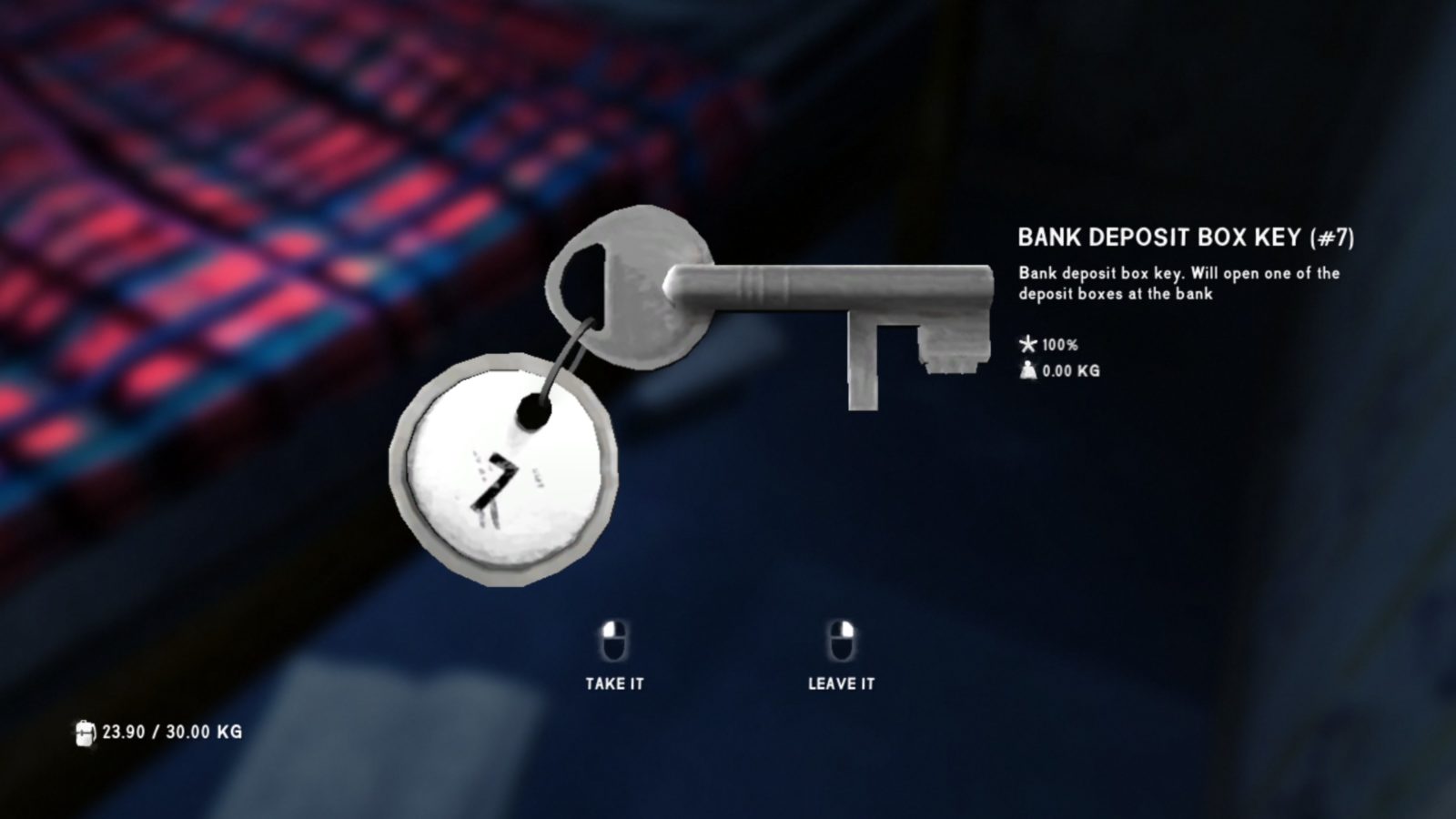 As usual, there’s some pretty nice stuff in here. To find the deposit key, you need to search the urn on the fireplace.