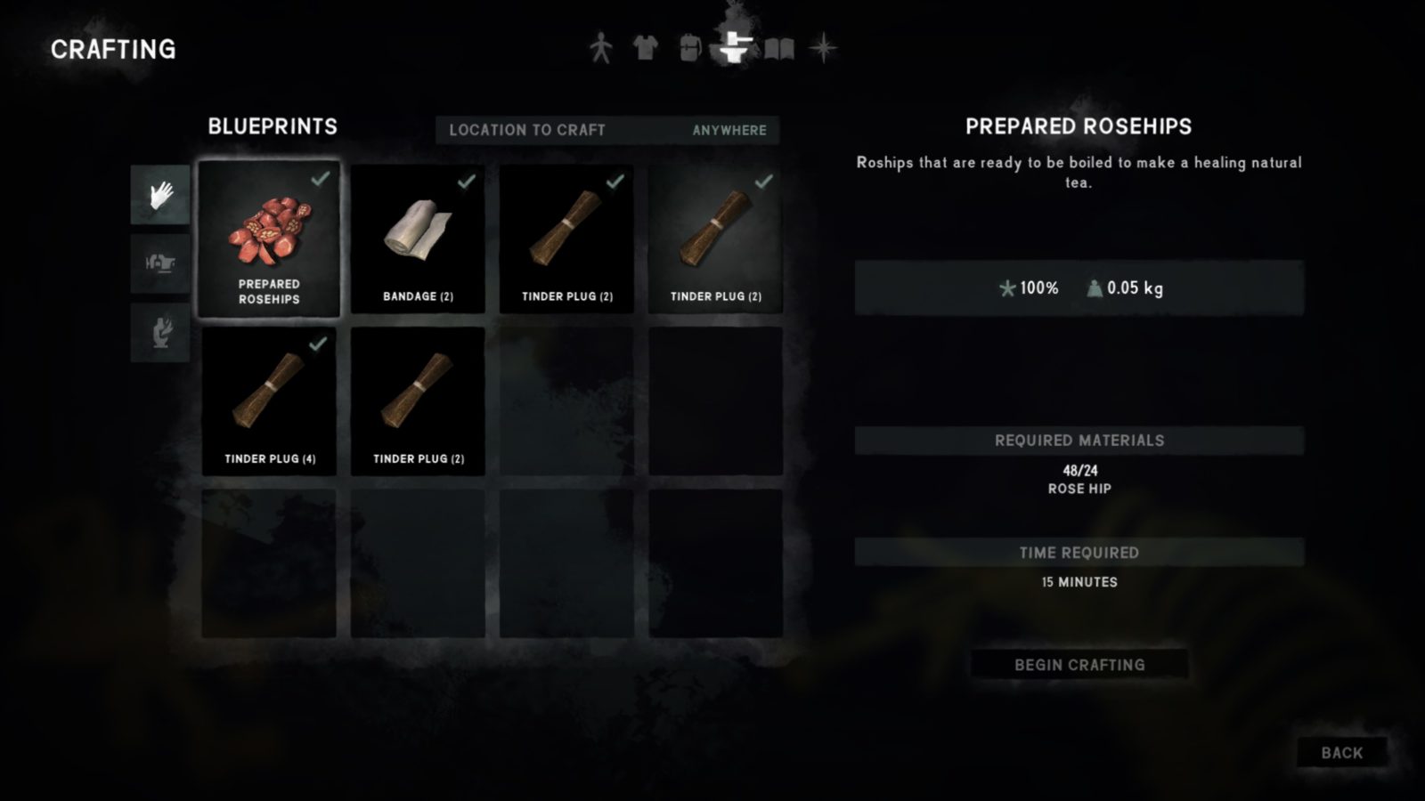 To use rosehips, you must first craft them into prepared rosehips. These can then be cooked with water to create tea.