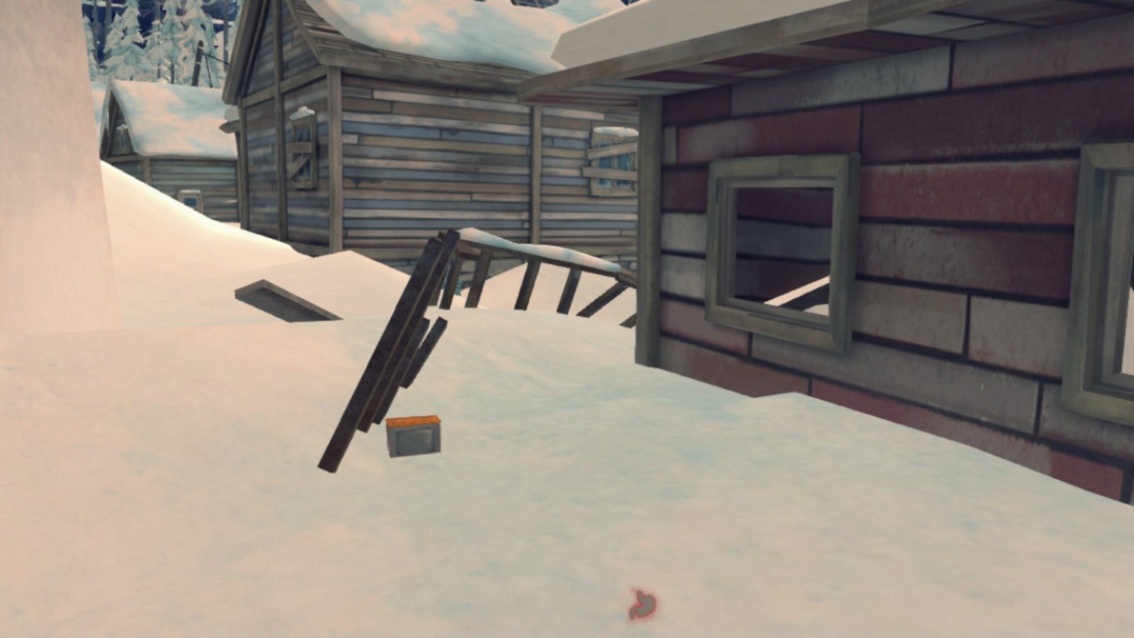 The weather is turning bad, and Will will freeze to death if we don’t build up the fire. So head outside and pick up any sticks or wood you can find. There should be around five cedar logs lying around, crates you can break up for reclaimed wood, books inside the crates, and plenty of sticks.